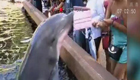 调皮海豚伸嘴抢美女电脑