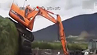 实拍牛人开挖掘机从高坡上“跳”下
