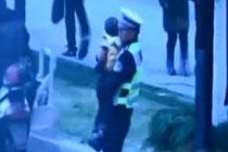 女子骑车被撞 交警抱娃指挥交通