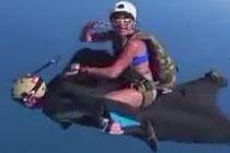 男子驮着女友翼装飞行
