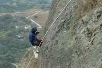 攀岩爱好者高空索降捡垃圾