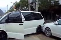 危险!父亲停车没熄火 二岁娃倒车连撞三车