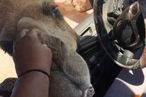 骆驼截停女司机 把头伸进车窗抢走午餐