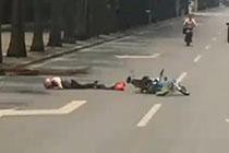骑行女子被落叶砸翻车