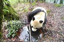红外线相机拍到野生大熊猫饮水漫步