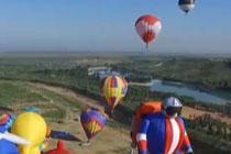 宁夏灵武卡通热气球穿越沙海扮靓天空