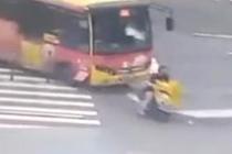 实拍行人两车夹击中生还