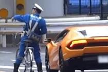 跑车违规逃逸 警察骑自行车拦截