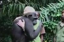 被放生黑猩猩拥抱救命恩人