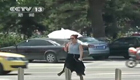 【同期】目击者:我开车奔这边走 我看到一个现代(肇事吉普车)往这边开 因为我是这边往这边开 它在我前边 那车一下子从护栏飞上来了 然后我就(开)过去了