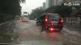 北京暴雨积水成河 汽车水中穿行