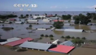 航拍洪峰过后的被淹村落
