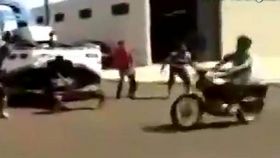 摩托男被汽车牵引钢索勒断脖子恐怖瞬间