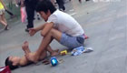 实拍女子街头行乞虐待幼儿