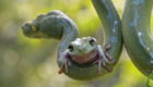 大胆树蛙亲昵蟒蛇