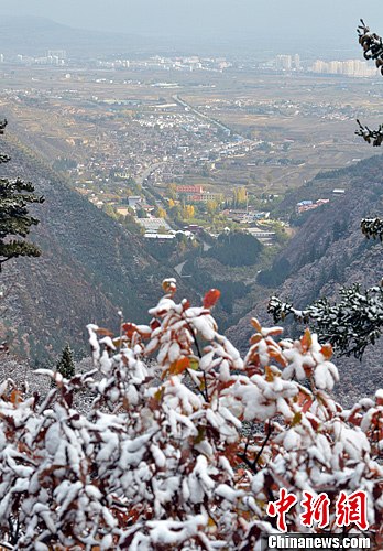 甘肃榆中飘“秋雪” 红叶配白雪独具魅力(2)