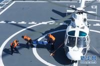 搜救直升机营救“落水人员”。孙利 摄 图片来源:新华网