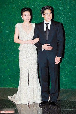 身着主婚纱的郭晶晶和新郎霍启刚。图片来源:《重庆晚报》。