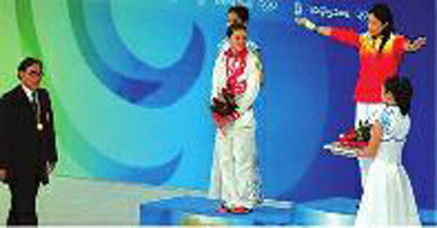 2008年8月17日,郭晶晶在北京奥运会女子3米跳板决赛中获得金牌,“准公公”霍震霆为她颁奖